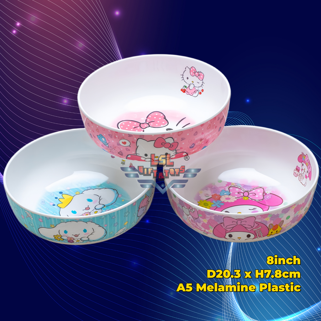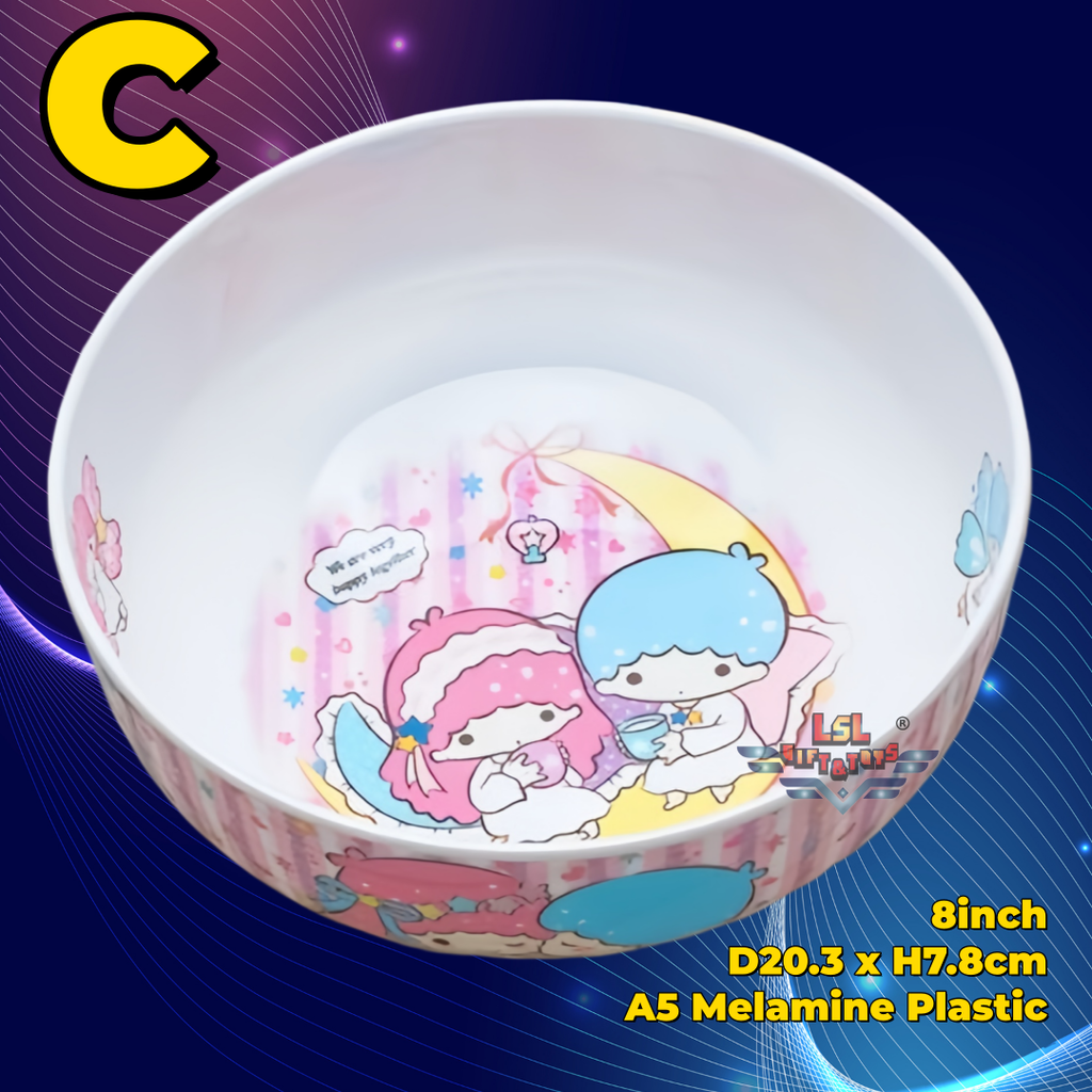 H-442 LSL GIFTS 8inch Melamine Plastic Big Soup Bowl Cartoon Kitty Melody Kuromi Twin Star