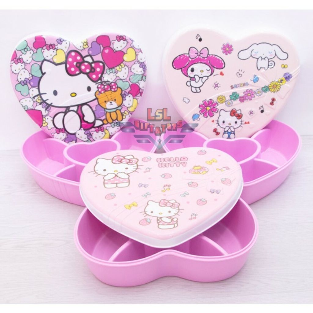 [H-313] LSL GIFTS Cartoon KT Dora emon Dried Fruit Candy Heart Shape Snack Box Melamine Plastic Food Container