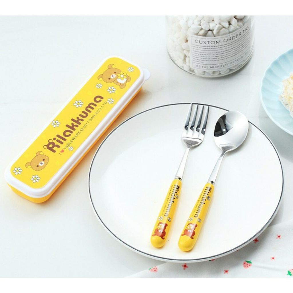 [H-371 ]KT Doreamon Rilak.kuma Cartoon Stainless Steel Spoon Fork Tableware Set