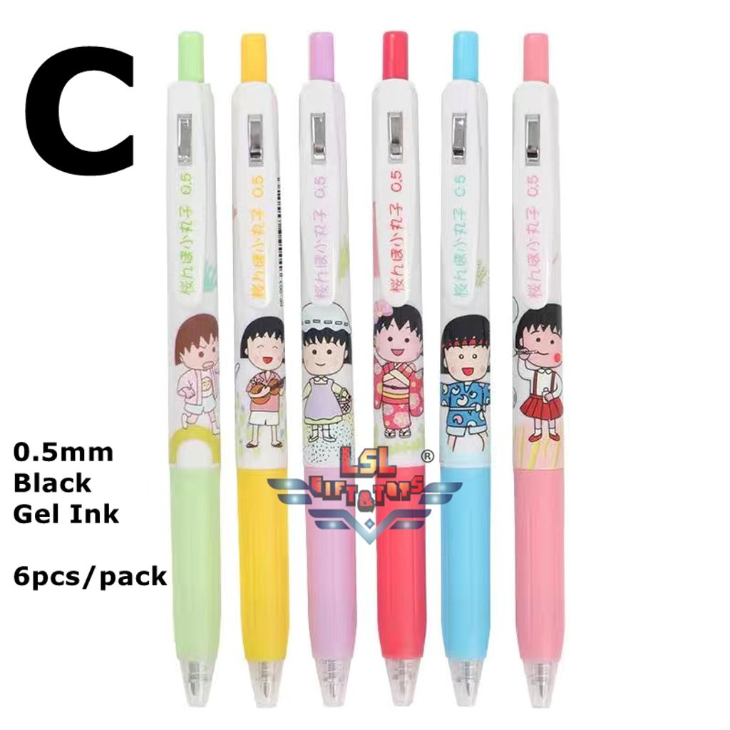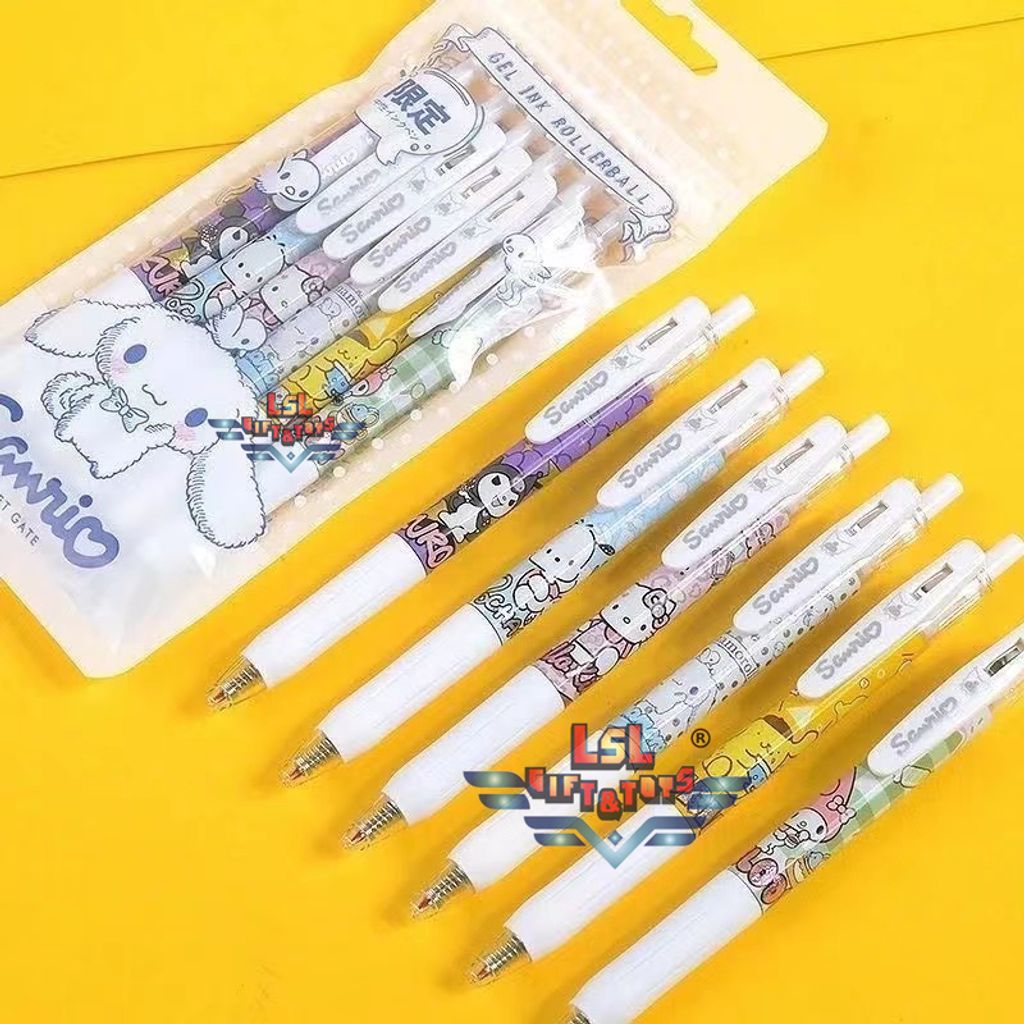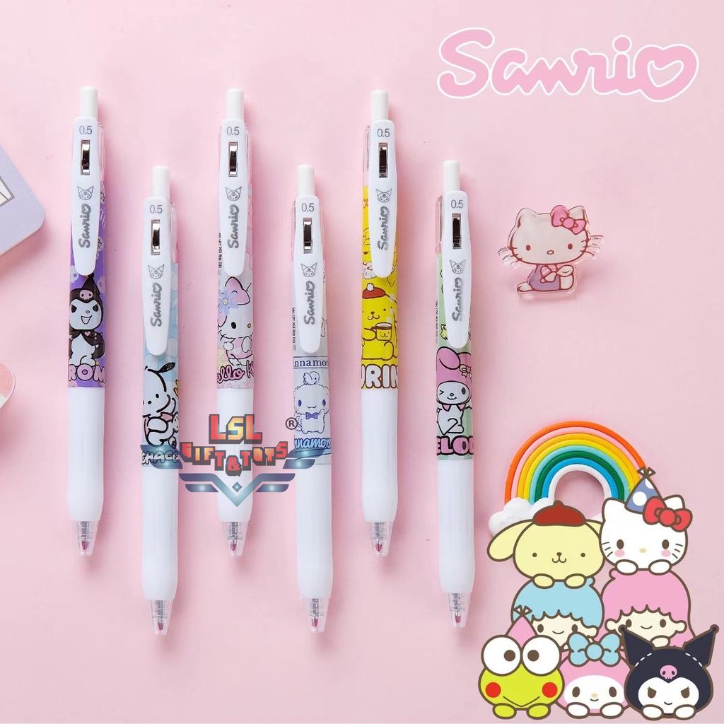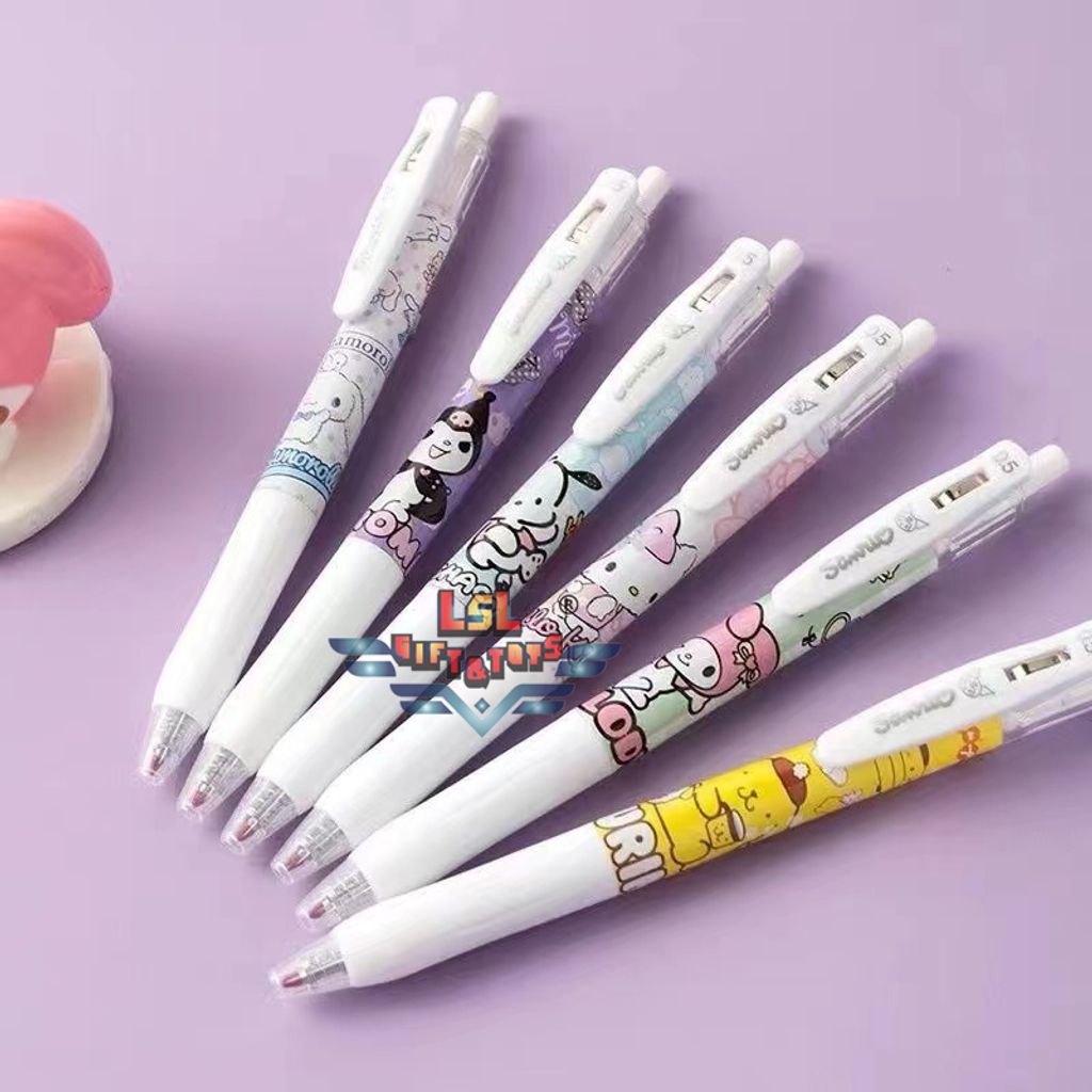 [P-804] LSL GIFTS Assorted Cartoon Kitty Melody Purin Press Gel Ink Rollerball Pen 0.5mm 6pcs per pack